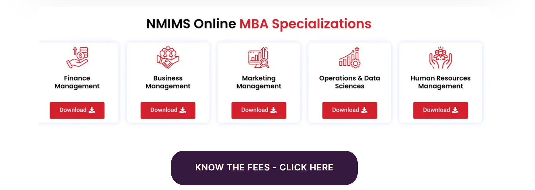 Get ready to take your career to the next level with the NMIMS Online MBA program. Our five contemporary specialisations are designed for working professionals like you, offering flexible learning options from expert faculty. Gain the skills and knowledge needed to succeed in todayβs competitive business landscape. Enroll now for the NMIMS University Online MBA to transform your future.